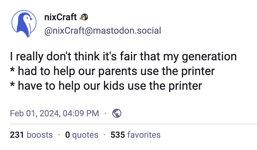 And the evidence seems to be with me on that. People who grew up in the iPad era are emphatically not more tech savvy than the generation before them. A recent study showed that Gen Z are worse in digital security than Baby Boomers (and that’s saying something). And it’s not just security. I've seen (admittedly anecdotal) evidence that the younger generations — who grew up surrounded by modern technology — tend to have worse tech skills than, say, Millennials.